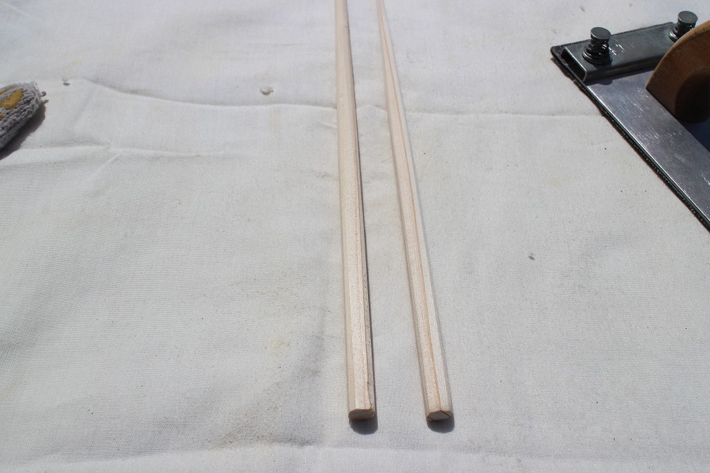 先週の土曜日にしょいか~ごの「春の工芸品まつり」で、飫肥材のお箸の素材を四角形から八角形に仕上げるまでのデモをしました。店頭ではどうしても集中して作業できないので、中途半端な粗・荒仕上げのままでした。それを改めて奇麗な八角形に仕上げます。