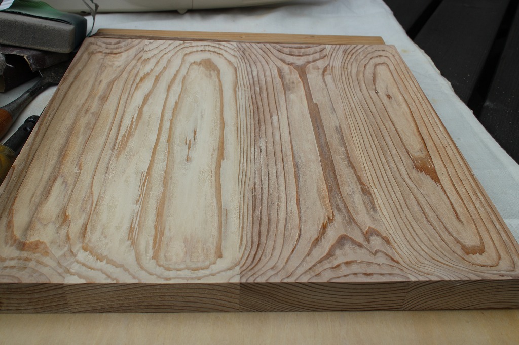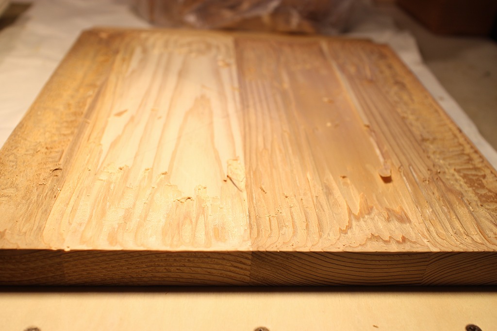 次に小端口から正目方向に掘り下げていくのですが、純目と逆目が交差している部分は超注意です。ノミの種類を代えて徐々に仕上げて⇒サンドペーパーの番手を代えながら仕上げます。