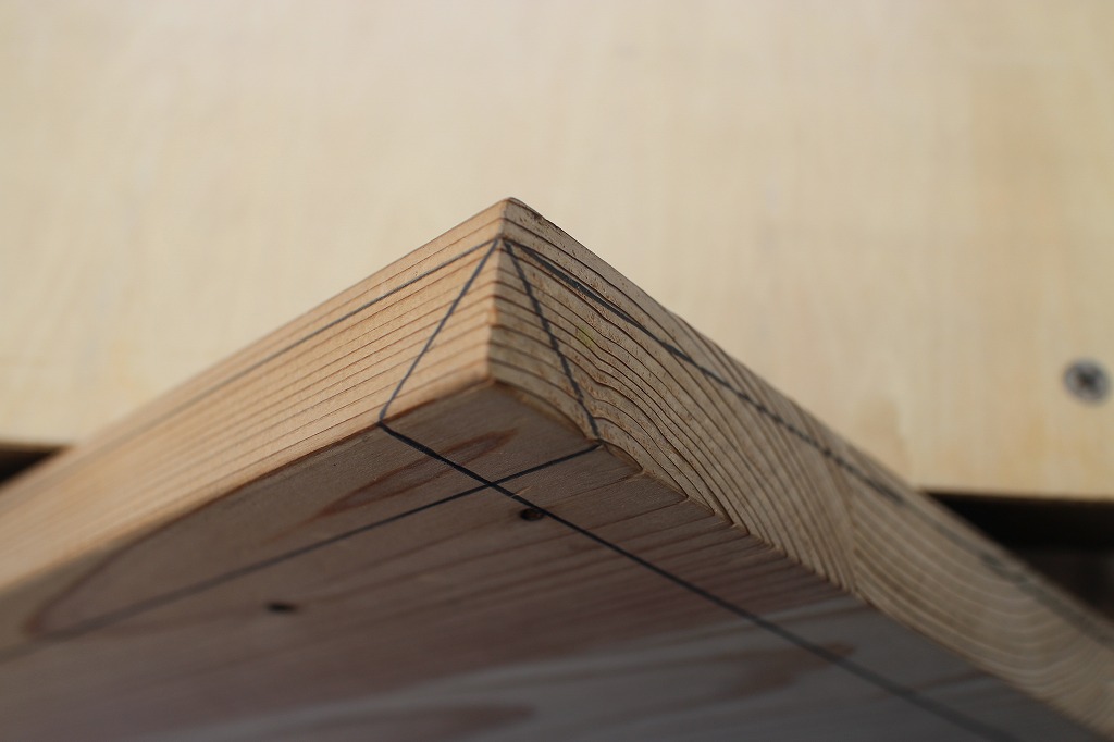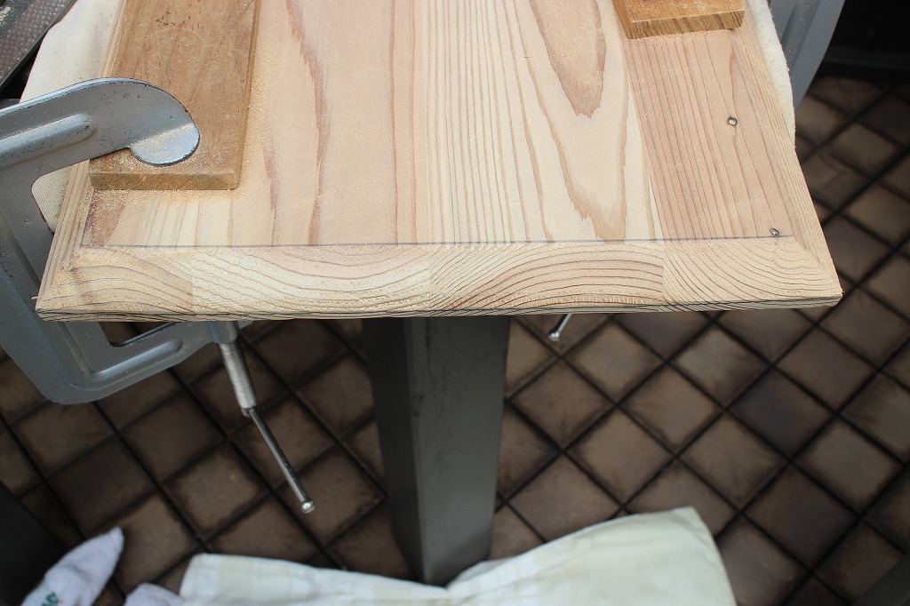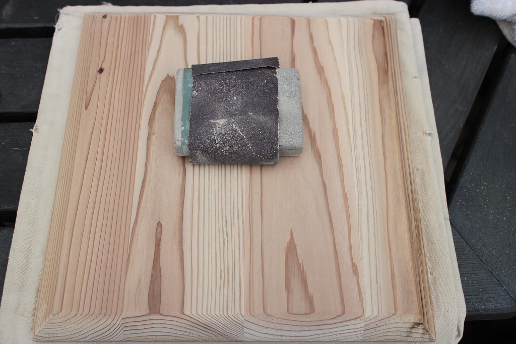 次の工程は四辺の面取りです。成形できたらもう一度全体のファインサンディングです。